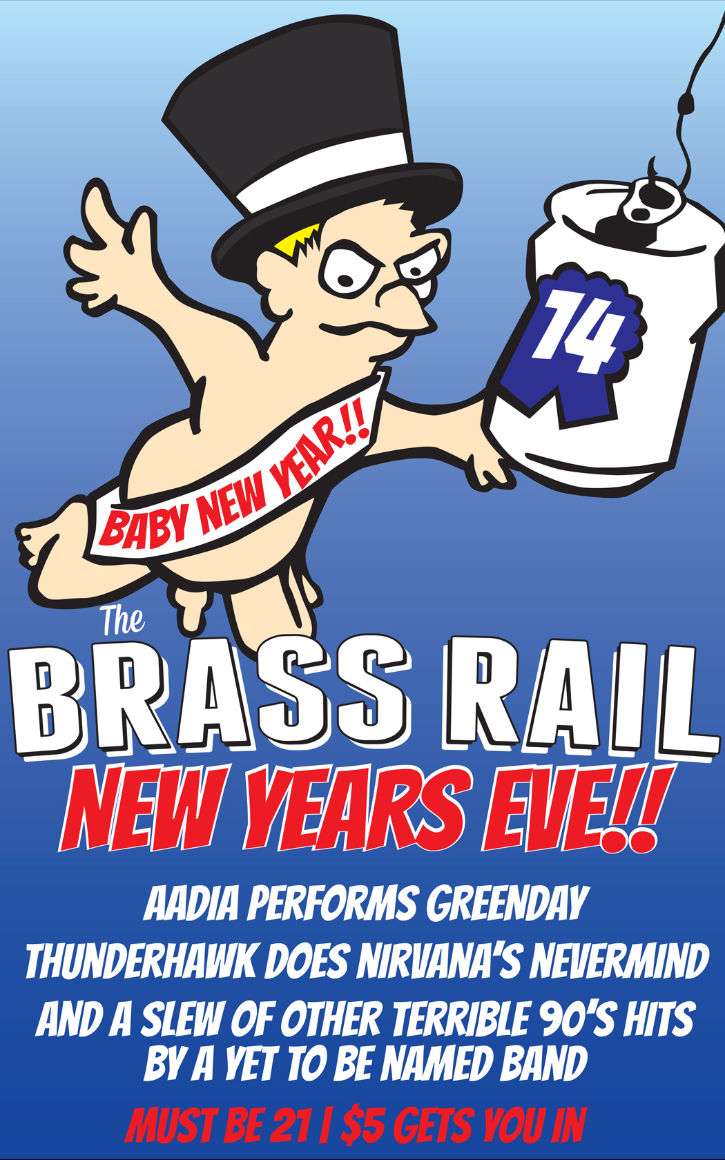 90’s Music New Years Eve Party with bands Aadia, Thunderhawk and members of Heaven’s Gateway Drugs playing some classic 90’s tunes.