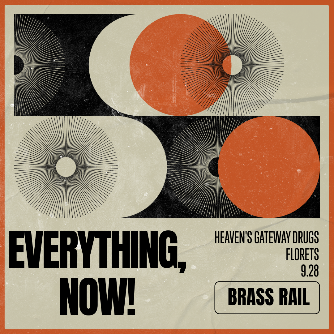 Everything, Now! (Indiana rock band, since 2003) https://www.instagram.com/everythingnowband/ Heaven's Gateway Drugs https://heavensgatewaydrugs.bandcamp.com/track/anyones-guess-but-mineFlorets https://florets.bandcamp.com/album/greetings-from $7 cover, must be 21