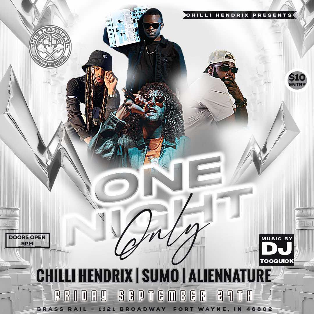 Chilli Hendrix https://www.instagram.com/takeapillchill/ https://open.spotify.com/artist/28fZjjnQdWK5xmjp5thxpm?si=UR8c3f3QSvKRGRt0HfFMdw Sumo https://www.instagram.com/sumo_def/ https://music.youtube.com/playlist?list=OLAK5uy_kWTvBaQcyTwpvS1AD18hiyA0UpEaHL1O0 Aliennature https://www.instagram.com/aliennature/ https://open.spotify.com/album/3LH4Hjl5mF3nlS6KkSpXhQ?go=1&sp_cid=52cc1cf2d000ad677079f2450db78b7e&nd=1&dlsi=ff7adb6885c74757 $10 cover, must be 21