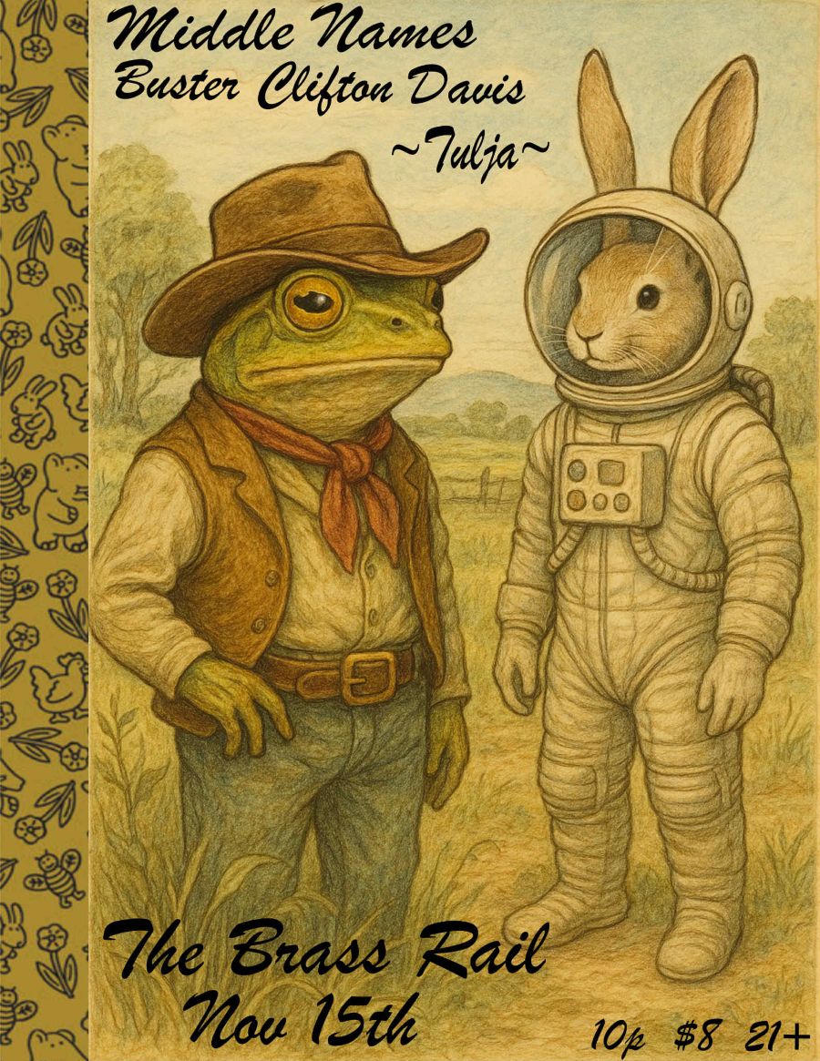 Middle Names https://www.instagram.com/middlenamesband/ Buster Clifton Davis https://www.instagram.com/bustercliftondavis/ Tulja https://www.instagram.com/tulja.music/ $8 cover, must be 21