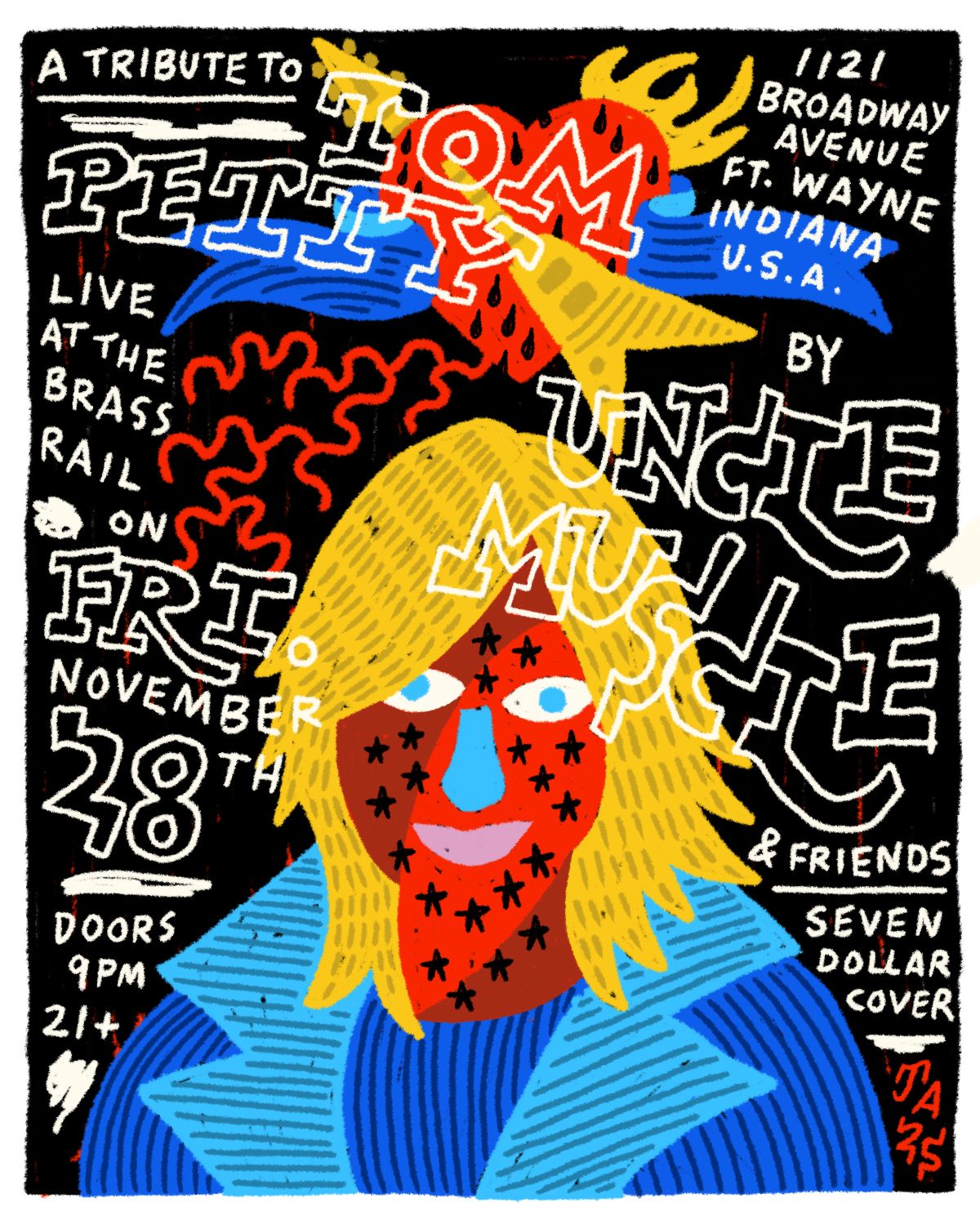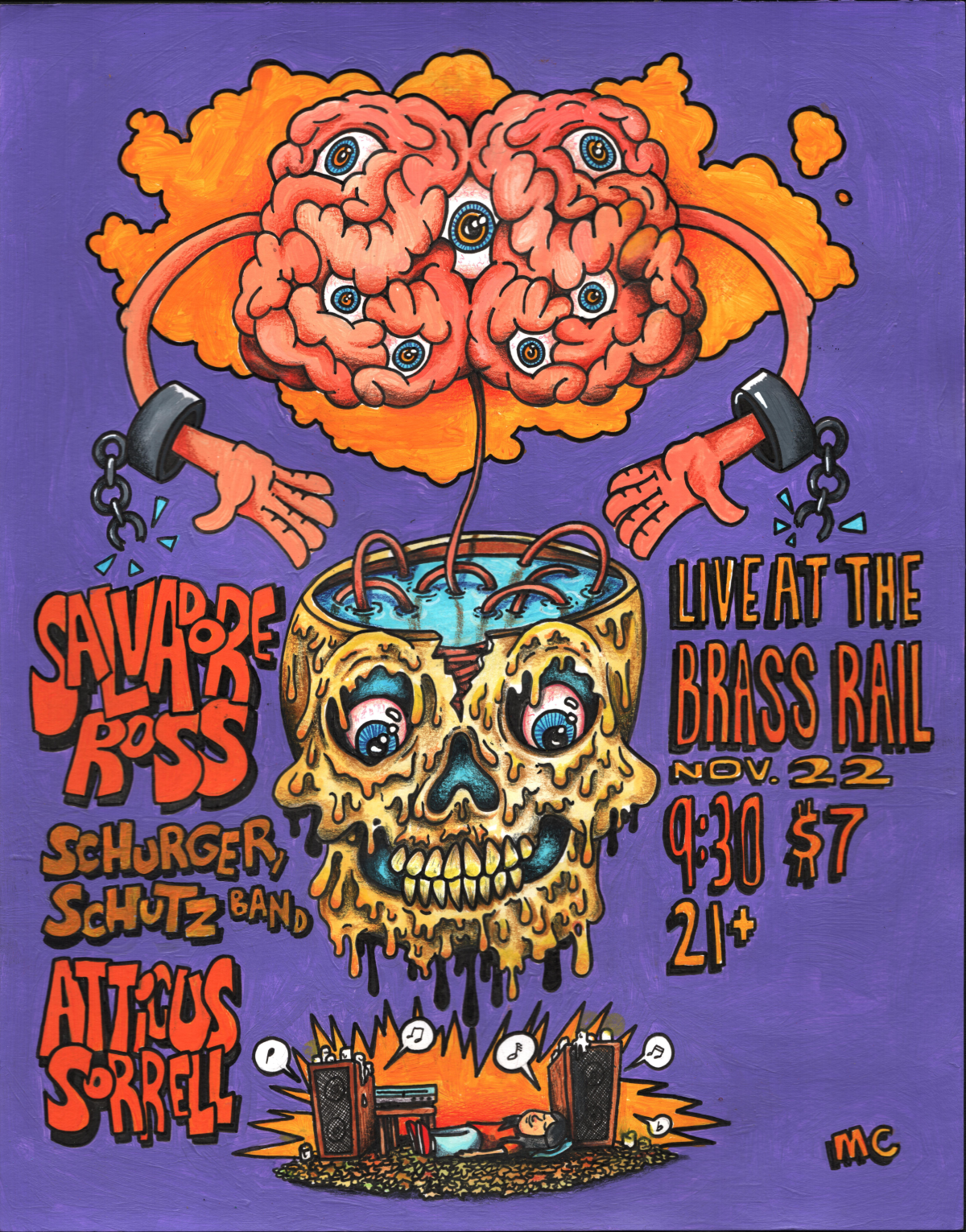 Atticus Sorrell https://www.instagram.com/atticusfinch95/ Salvadore Ross https://www.instagram.com/salvadore_ross_/ Schurger Shutz Band $7 cover, must be 21 poster by Michael Collins https://www.instagram.com/michael.collinsart/ |