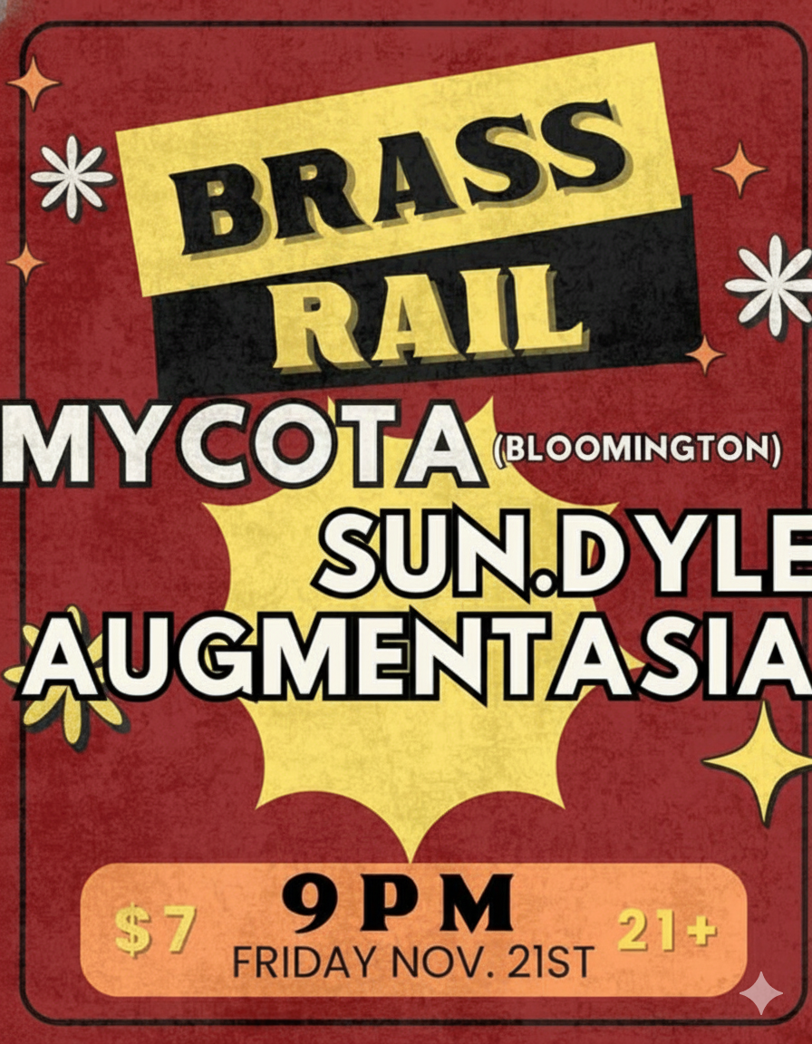Mycota https://www.instagram.com/mycotaofficial/ Sun.Dyle https://www.instagram.com/sun.dyle/ Augmentasia https://www.instagram.com/augmentasia_/ $7 cover, must be 21.